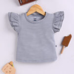TINYO Girls Self Striped Flutter Sleeve Cotton Top (Grey, Pack of 1)