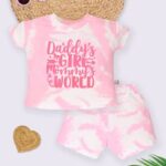 Tinyo Girls Typographic Print 100% Cotton T-Shirt & Shorts Set For Infant Girls (Pink, Pack Of 1)