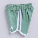 Matching green typography printed shorts with slip-on closure