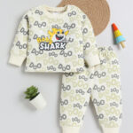 TINYO Infant Boys Baby Shark Printed T-shirt with Pyjamas Set (Off White, Pack of 1)