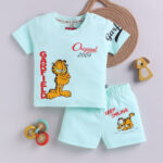 TINYO Infant Boys Garfield Printed Cotton Blend T-Shirt & Shorts Set (Sea Green, Pack of 1)