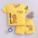 TINYO Infant Boys Garfield Printed Cotton Blend T-Shirt & Shorts Set (Yellow, Pack of 1)