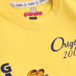 Yellow Garfield printed t-shirt with round neck, short sleeves, and snap button closure
