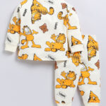 Tinyo infant boys Garfield clothing set, Tinyo pure cotton T-shirt and joggers set, cream infant boys outfit, Garfield printed baby clothing, casual infant wear India, comfortable baby playwear, stylish toddler outfit, soft and breathable infant clothing