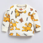 Dress your little one comfortably and stylishly with the Tinyo Infant Boys Garfield Printed Pure Cotton T-shirt with Joggers. This set includes a cream Garfield printed long-sleeve T-shirt with a round neck and ribbed cuffs, paired with matching joggers featuring an elasticated waistband and slip-on closure. Made from 100% pure cotton, this outfit ensures soft, breathable comfort for everyday wear and play.