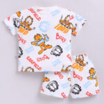 Tinyo Infant Boys Garfield Printed Pure Cotton T-shirt with Shorts (Cream & Blue, Pack of 1)