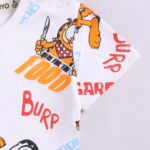 Cream & blue Garfield printed T-shirt with round neck, short sleeves, and snap button closure