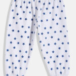 Tinyo infant boys pyjamas, white blue geometric cotton pyjamas, slip-on baby nightwear, mid-rise infant sleepwear, cuffed hem baby bottoms, soft cotton infant clothing, machine washable baby pyjamas