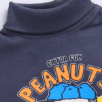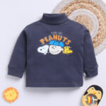 Keep your little one cozy and stylish with the Tinyo Infant Boys Peanuts Printed High Neck T-Shirt. Crafted from soft knitted cotton, this navy blue t-shirt features a Peanuts humour and comic print, a high neck, and long sleeves for warmth and comfort. Its relaxed fit allows easy movement, making it perfect for casual playtime or layering during cooler days.