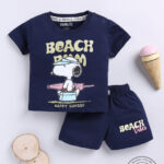 Keep your little one comfy and stylish with this TINYO Infant Boys Peanuts Printed T-Shirt with Shorts set in navy blue. Made from soft pure cotton, it features a round-neck T-shirt with short sleeves and snap button detail, paired with printed shorts with an elasticated slip-on waist. Perfect for playtime or casual outings.