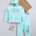 TINYO Infant Boys Printed Hooded Sweatshirt & Joggers Set (Turquoise Blue, Pack of 1)