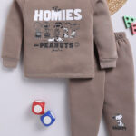 TINYO Boys Peanuts Printed Sweatshirt & Joggers Set (Brown, Pack of 1)