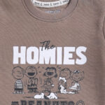 Keep your little one stylish and comfortable with this TINYO Boys Peanuts printed set. The brown sweatshirt features a round neck and long sleeves, paired with matching printed joggers with a drawstring closure for a snug fit. Perfect for casual wear or playtime.