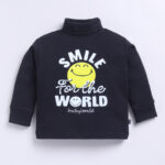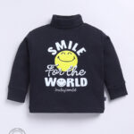 Be the first to review “TINYO Infant Boys Smiley World Printed High Neck Pure Cotton T-Shirt (Black, Pack of 1)”