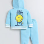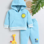 TINYO Infant Boys Smiley World Printed Hooded Sweatshirt & Joggers Set (Blue, Pack of 1)