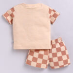 Dress your little one in playful style with this Tinyo Infant Boys Smiley World Printed T-shirt with Shorts set. The beige Smiley World printed T-shirt features a round neck, short sleeves, and a convenient button closure, while the matching checked shorts have a slip-on closure for easy wear. Crafted from soft, breathable pure cotton, this set ensures comfort and ease of movement for your infant.
