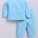 Keep your little one cozy and playful with this TINYO Infant Boys Smiley World Printed Sweatshirt with Joggers Set. Crafted from soft cotton blend fabric, the blue printed sweatshirt features a round neck and long sleeves, paired with matching printed joggers with a convenient drawstring closure. Perfect for casual wear or indoor play.