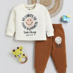 TINYO Infant Boys Smiley World Printed Sweatshirt with Joggers Set (Brown, Pack of 1)