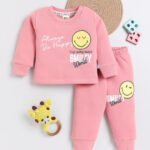 TINYO Infant Boys Smiley World Printed Sweatshirt with Joggers Set (Pink, Pack of 1)