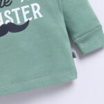 Tinyo infant boys t-shirt, green typography printed cotton t-shirt, high neck long sleeve t-shirt, relaxed fit infant outfit, soft breathable cotton, machine washable casual wear