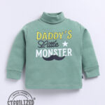 Keep your little one cozy and stylish with the Tinyo Infant Boys Typography Printed High Neck T-Shirt. Crafted from soft knitted cotton, this green t-shirt features a bold typography print, a high neck, and long sleeves for warmth and comfort. Its relaxed fit allows easy movement, making it perfect for casual playtime or layering during cooler days.