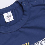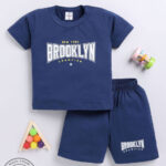 Dress your little one in comfortable everyday style with the Tinyo Infant Boys Typography Printed Pure Cotton T-Shirt & Shorts Set. This set includes a navy blue typography printed T-shirt with a round neckline and short sleeves, paired with matching navy blue typography printed shorts featuring slip-on closure. Crafted from cotton blend, the set offers a regular fit and is easy to care for with machine wash.