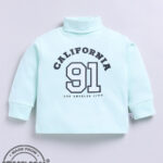 Keep your little one cozy and stylish with the Tinyo Infant Boys Varsity Printed High Neck T-Shirt. Crafted from soft knitted cotton, this blue t-shirt features a varsity typography print, a high neck, and long sleeves for warmth and comfort. Its relaxed fit allows easy movement, making it perfect for casual playtime or layering during cooler days.