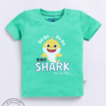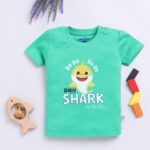 TINYO Infant Girls Baby Shark Printed Cotton T-Shirt (Green, Pack of 1)