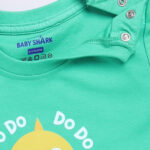 Tinyo infant girls t-shirt, green Baby Shark cotton t-shirt, button closure baby wear, short sleeve infant top, soft cotton baby clothing, machine washable infant t-shirt