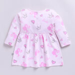 Tinyo infant girls Barbie print dress, Tinyo cotton flared dress, pink infant girls dress, breathable cotton baby dress, comfortable infant frock, stylish baby dress India, knee-length flared dress, bow detail dress for infants, machine washable baby dress, cute infant outfit, casual baby wear