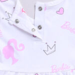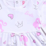 Tinyo Infant Girls Barbie Printed Bow Detail Cotton Flared Dress (White & Pink, Pack Of 1)