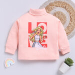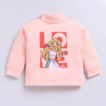 Keep your little one cozy and stylish with the Tinyo Infant Girls Barbie Printed High Neck T-Shirt. Crafted from soft knitted cotton, this peach t-shirt features a Barbie graphic print, a high neck, and long sleeves for warmth and comfort. Its relaxed fit allows easy movement, making it perfect for casual playtime or layering during cooler days.
