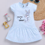 Tinyo Infant Girls Bugs Bunny Printed Pure Cotton A-Line Dress (Blue, Pack Of 1)