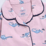 Unwind your little one in comfort with this Tinyo DINO WORLD Printed Shirt and Pyjamas Pure Cotton Night Suit for girls. Crafted from soft, breathable cotton, this night suit features a long-sleeve shirt with a lapel collar and matching printed pyjamas with an elasticated waistband and slip-on closure. The fun Dino World prints add a playful, cheerful vibe, making bedtime or lounging extra enjoyable.