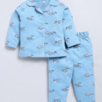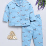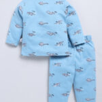 Tinyo Infant Girls DINO WORLD Printed Shirt and Pyjamas Pure Cotton Night Suit (Sky Blue, Pack of 1)
