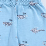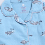 Sky blue night suit with Dino World printed shirt and pyjamas