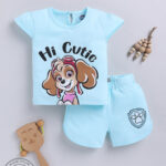 Tinyo infant girls set, Paw Patrol printed T-shirt & shorts, blue girls clothing set, cotton blend girls outfit, round neck T-shirt for infants, short sleeve T-shirt, slip-on shorts for girls, machine washable kids wear, Tinyo kids apparel