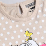 Tinyo Infant Girls Peanuts Printed Pure Cotton T-Shirt With Joggers (Beige, Pack Of 1)