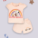 Tinyo Infant Girls Peanuts Printed Pure Cotton Top with Shorts (Salmon, Pack of 1)