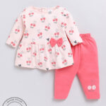 Tinyo infant girls set, pink & coral printed tunic & leggings, cotton blend girls outfit, long sleeve tunic for infants, slip-on leggings for girls, breathable cotton kids wear, machine washable infant clothing, Tinyo kids apparel