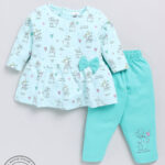 Tinyo infant girls set, sea green printed tunic & leggings, cotton blend girls outfit, long sleeve tunic for infants, slip-on leggings for girls, breathable cotton kids wear, machine washable infant clothing, Tinyo kids apparel