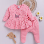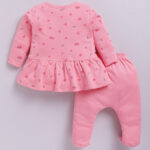 Add a touch of charm to your little one’s wardrobe with this TINYO Infant Girls Printed Cotton Tunic with Leggings Set. Crafted from soft pure cotton, it features a pink printed tunic with a stylish V-neck, long sleeves, and drawstring closure, paired with pink solid footed leggings with a comfortable slip-on waistband. Ideal for everyday comfort and casual wear.