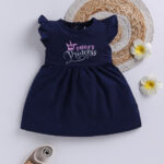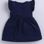 TINYO Infant Girls Printed Flutter Sleeve Fit & Flare Dress (Navy Blue, Pack of 1)