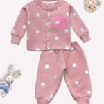 TINYO Infant Girls Printed Pure Cotton Sweatshirt with Joggers Set (Dusty Pink, Pack of 1)
