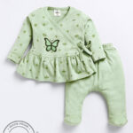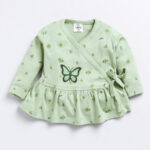 Add comfort and charm to your little one’s wardrobe with this TINYO Infant Girls Printed Tunic with Leggings Set. Crafted from soft cotton blend fabric, it features a green printed tunic with a stylish V-neck, long sleeves, and drawstring closure, paired with green solid footed leggings with slip-on closure for easy wear. Perfect for everyday comfort and casual outings.