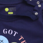 Keep your little one snug and stylish with the Tinyo Infant Girls Smiley World Printed Cotton T-Shirt. Designed in a charming navy blue conversational Smiley World print, it features a round neck, short sleeves, and a convenient button closure for easy dressing. Crafted from 100% knitted cotton, this t-shirt ensures soft comfort and breathable wear all day long.