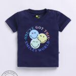 TINYO Infant Girls Smiley World Printed Cotton T-Shirt (Navy Blue, Pack of 1)