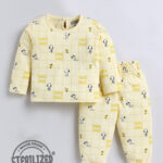 Keep your little one comfortable and stylish with this Infant Girls Snoopy Printed Clothing Set. Made from soft pure cotton, the yellow Snoopy printed T-shirt features a round neck, long sleeves, and button closure, paired with matching Snoopy printed joggers with a slip-on closure for easy dressing.