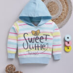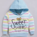 TINYO Infant Girls Striped Hooded Cotton T-Shirt (Blue & White, Pack of 1)
