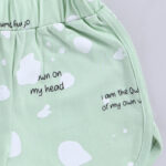 Matching sea green typography printed shorts with slip-on closure